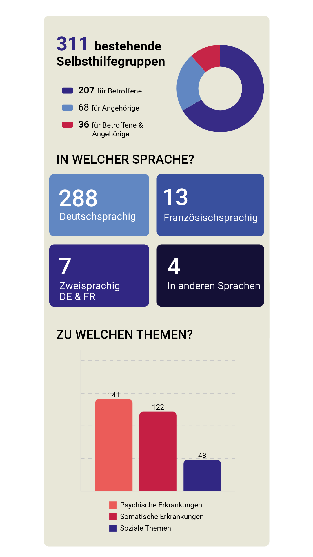 Themen mit den meisten Selbsthilfegruppen im Kanton Bern